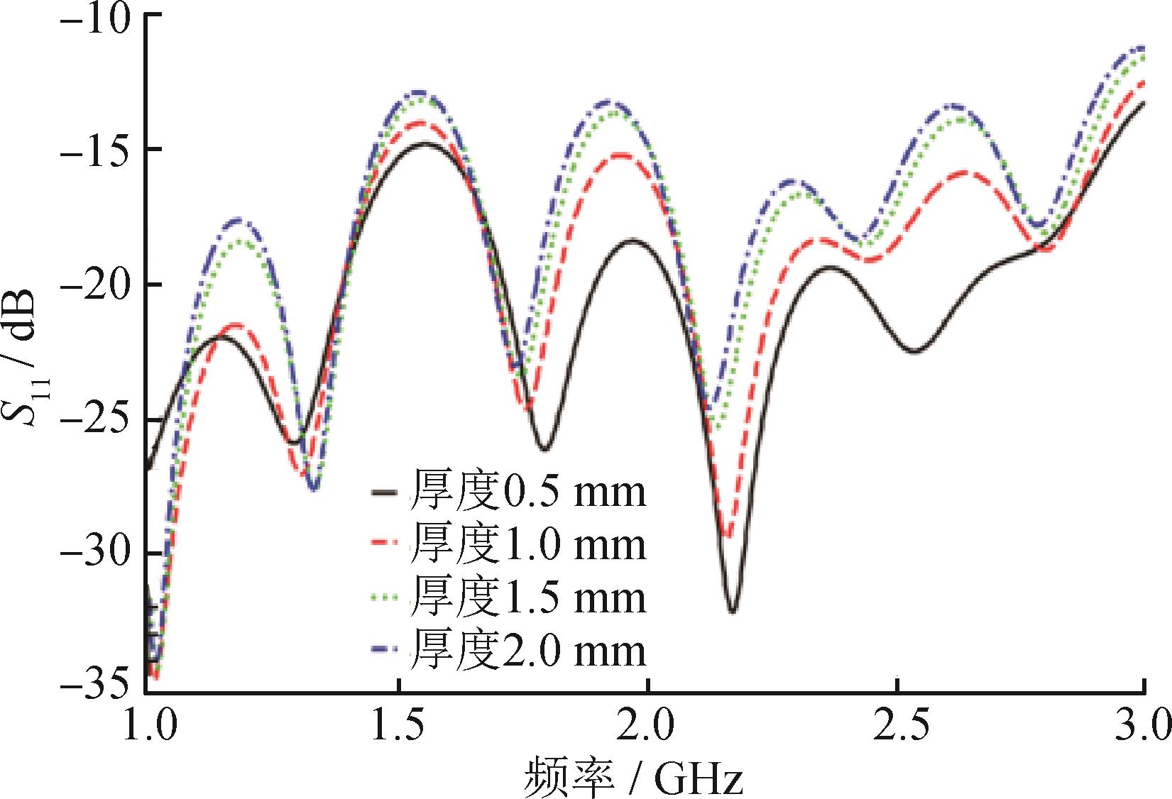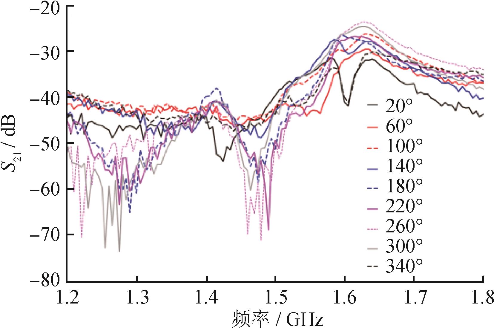 摘要:为满足航空发动机旋转件测试设备安装空间受限情况下的多测点、多参数信号传输需求,研发了一套基于无线遥测系统的六模块天线。基于微带天线技术开展发射和接收模块设计,实现装置小型化。在仿真软件中建立封装后的天线模型,分析封装胶厚度、材料介电常数、损耗角正切参数等对天线馈电端口的反射系数(S11)与传输系数(S21)的影响规律。根据仿真结果优化设计参数,研制六模块天线并开展性能测试,结果表明:该天线工作频率范围为1.3 ~ 1.7 GHz,工作带宽不低于40 MHz,满足信号传输设计要求;在转子与定子天线安装间距分别为8 mm和10 mm的条件下开展低速旋转台试验,并在转速为20 000 r / min且环境温度为80 ℃的工况下进行高速旋转台试验,系统的数据丢包率均低于1%。研制的六模块天线能够实现60个测点、多类型数据的可靠、高效传输,为航空发动机压气机、涡轮等旋转部件性能测试提供了有力支撑。