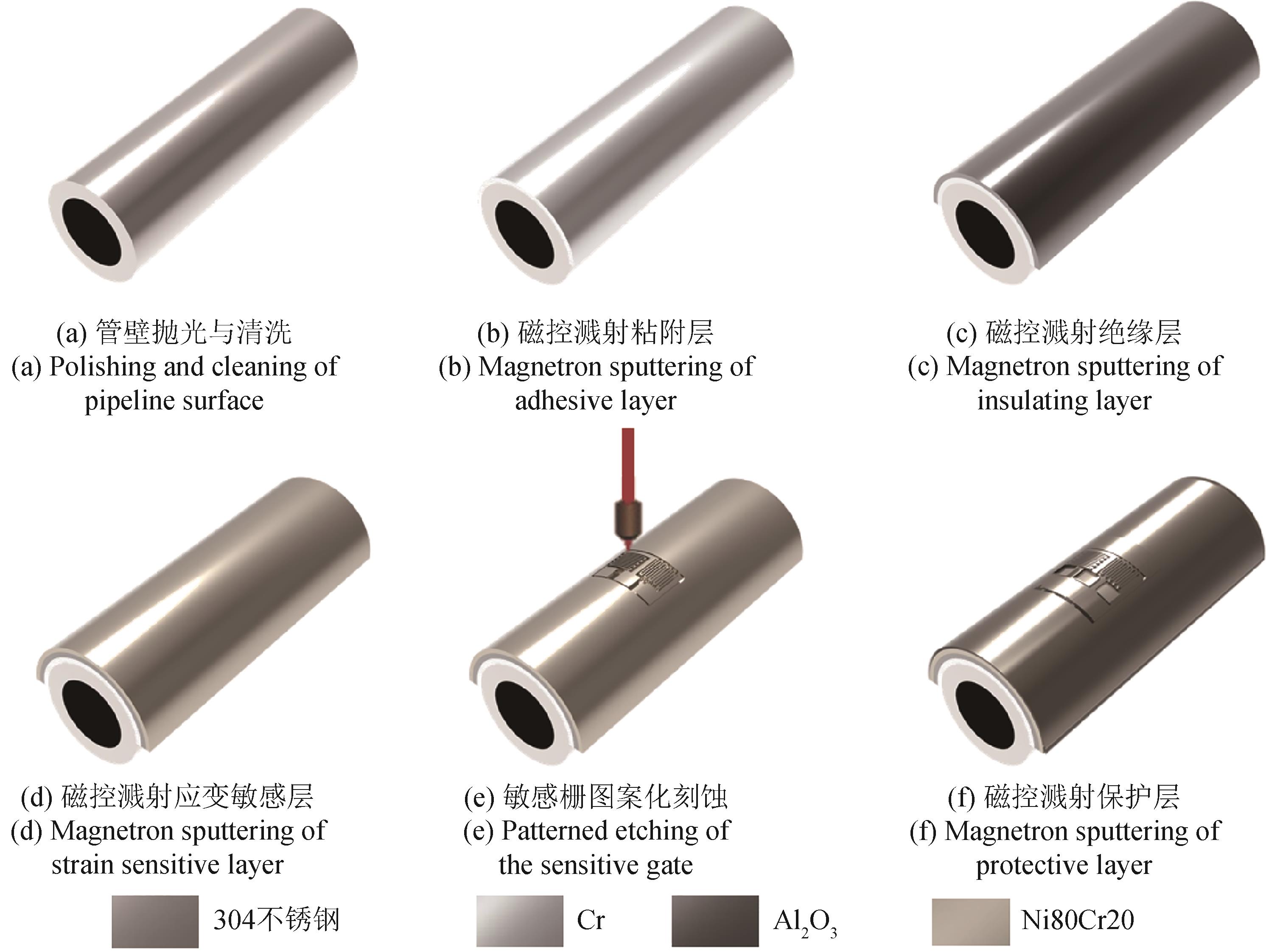 • 液压管道曲面一体化成形制造的薄膜应变传感器